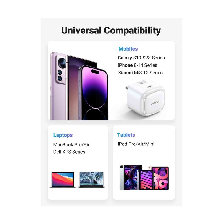 The UGREEN UK Pin Type-C 30W GaN Fast Charger (Model: CD305) is a next-generation charging solution designed for efficiency, portability, and safety. Utilizing advanced GaN II technology, this charger provides high-speed power delivery in a compact and lightweight form factor, making it the perfect companion for travel and everyday use.