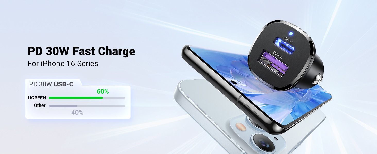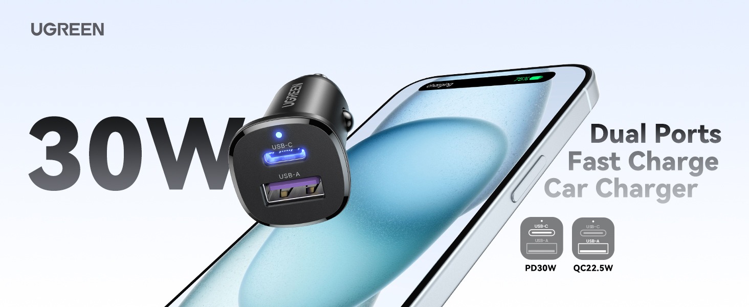 UGREEN 30W Type-C + USB Dual Port Car Charger – EC305 – 25845
