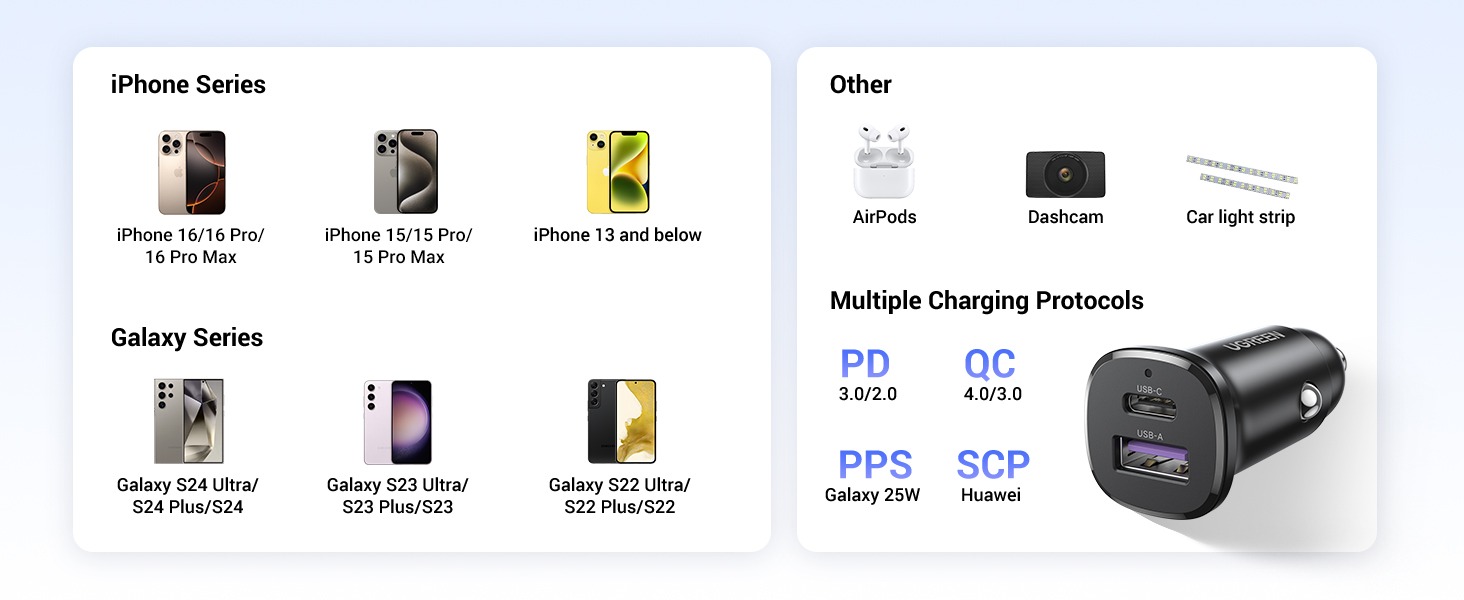 - Wide Compatibility: Compatible with a range of devices, including smartphones, tablets, cameras, dashcams, and other car electronics.