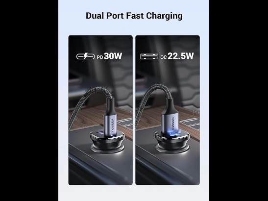 - Dual-Port Charging: Equipped with a USB-C port (PD 30W max) and a USB-A port (QC 22.5W max), allowing simultaneous charging of two devices without compromising speed.