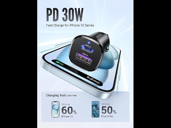 - Ports: 1 x USB-C (PD 30W max), 1 x USB-A (QC 22.5W max)