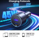 - Supports PD3.0, QC3.0, PPS, and Samsung 45W Fast Charging, making it compatible with various devices, including: